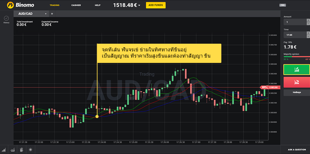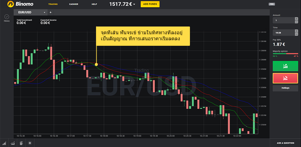 ลง หากเส้นสีเขียวของตัวบ่งบอกข้ามเส้นสีน้ำเงินในทิศทางที่ลงอยู่