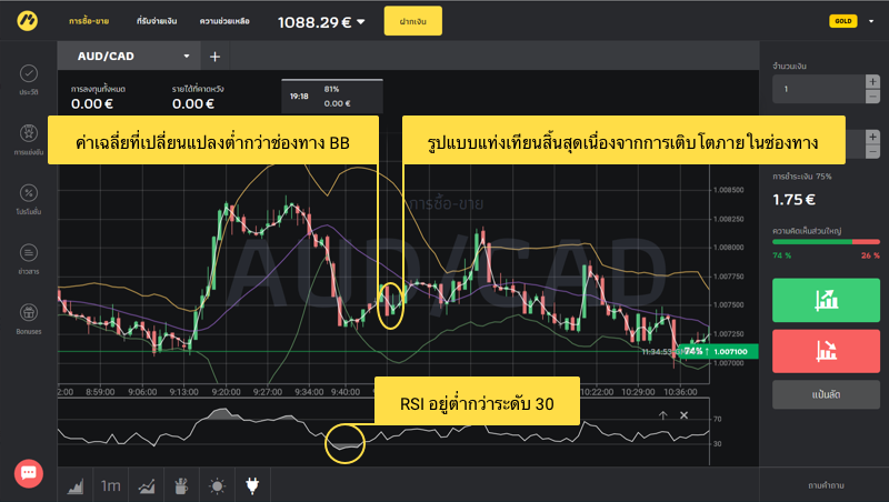 สำหรับการวิเคราะห์ตลาดโดยการใช้กลยุทธ์นี้ แนะนำให้ใช้กรอบเวลา 1 นาทีและช่วงการหมดอายุไม่น้อยกว่า 5 นาที