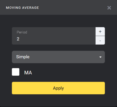 "เส้นค่าเฉลี่ย" ตัวชี้วัดนี้จะแสดงการเคลื่อนไหวของราคาในปัจจุบัน ตั้งช่วงไว้ที่ 2 และตั้งเป็นแบบ "ง่าย":